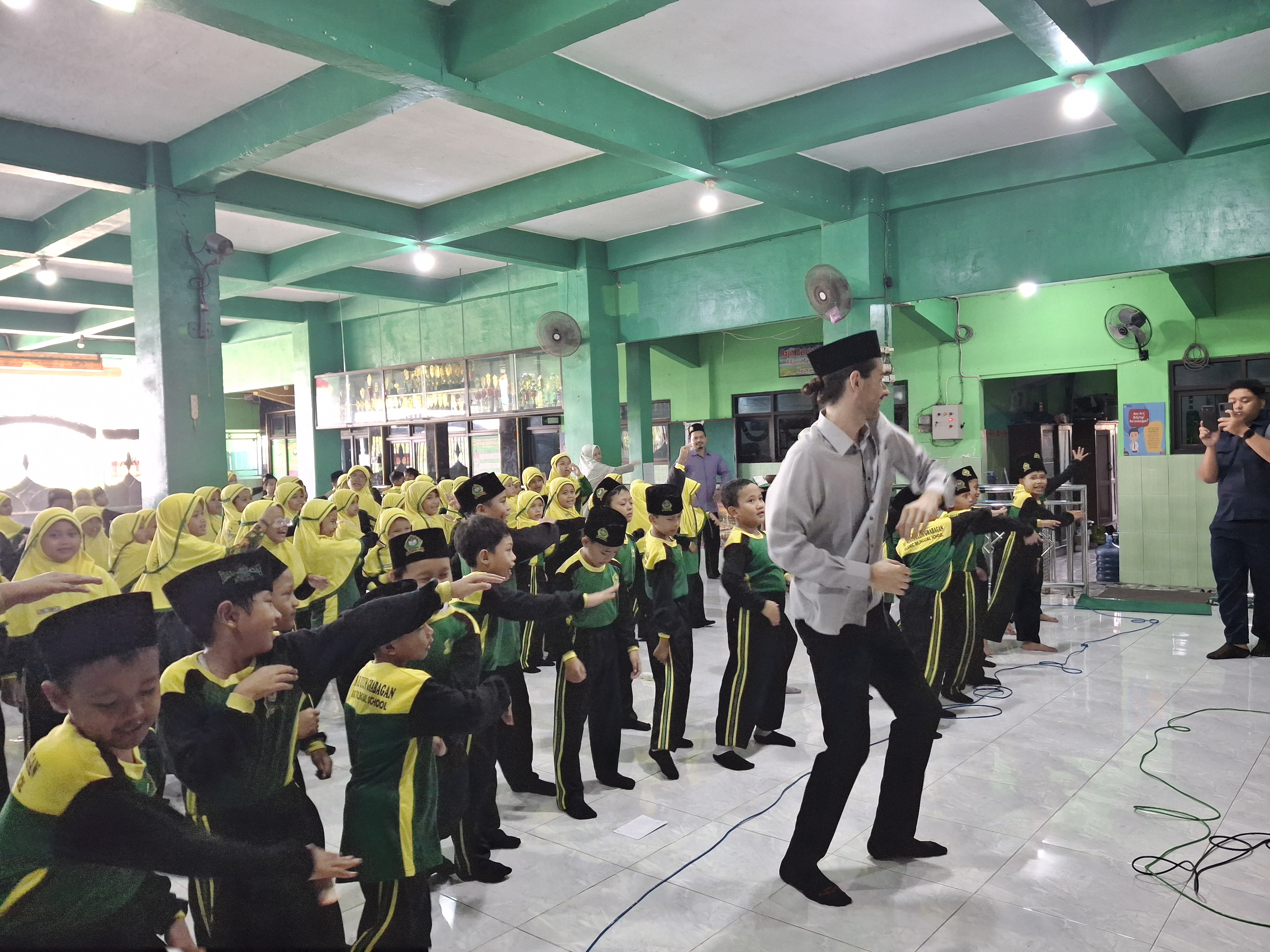 Kegiatan dimulai sejak pagi hari dengan senam bersama peserta didik kelas 1 dan 2. Aula madrasah dipenuhi tawa dan energi positif. Para siswa tampak antusias mengikuti gerakan demi gerakan, terlebih ketika Mr. Eugene ikut bergabung memimpin beberapa bagian senam dengan gaya unik dan lucu.