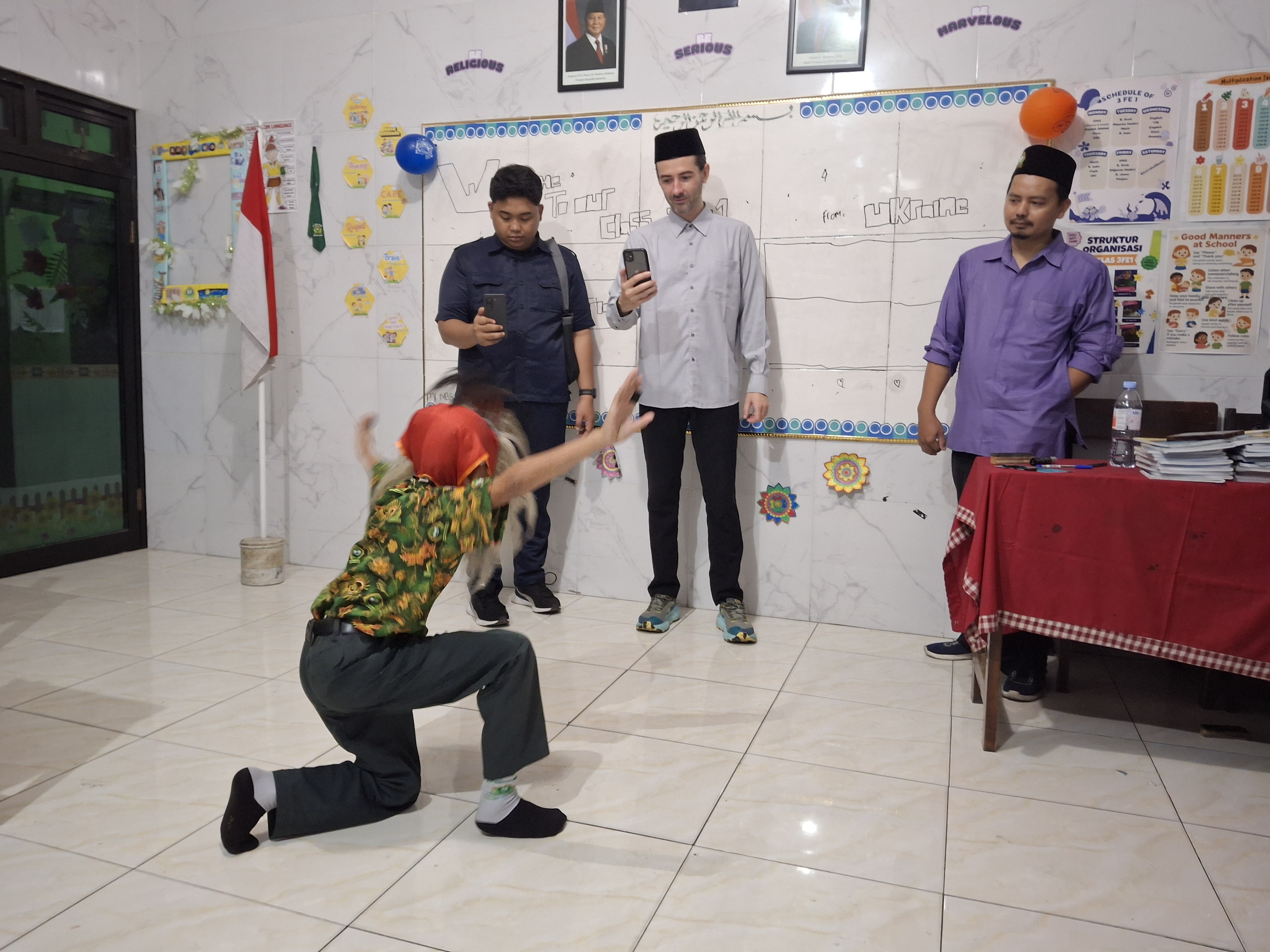 Di beberapa kelas lainnya, sesi berjalan lebih santai. Para siswa berdiskusi ringan mengenai kehidupan di Ukraina, makanan khas, musim salju, hingga kebiasaan sehari-hari anak-anak seusia mereka di negara tersebut.