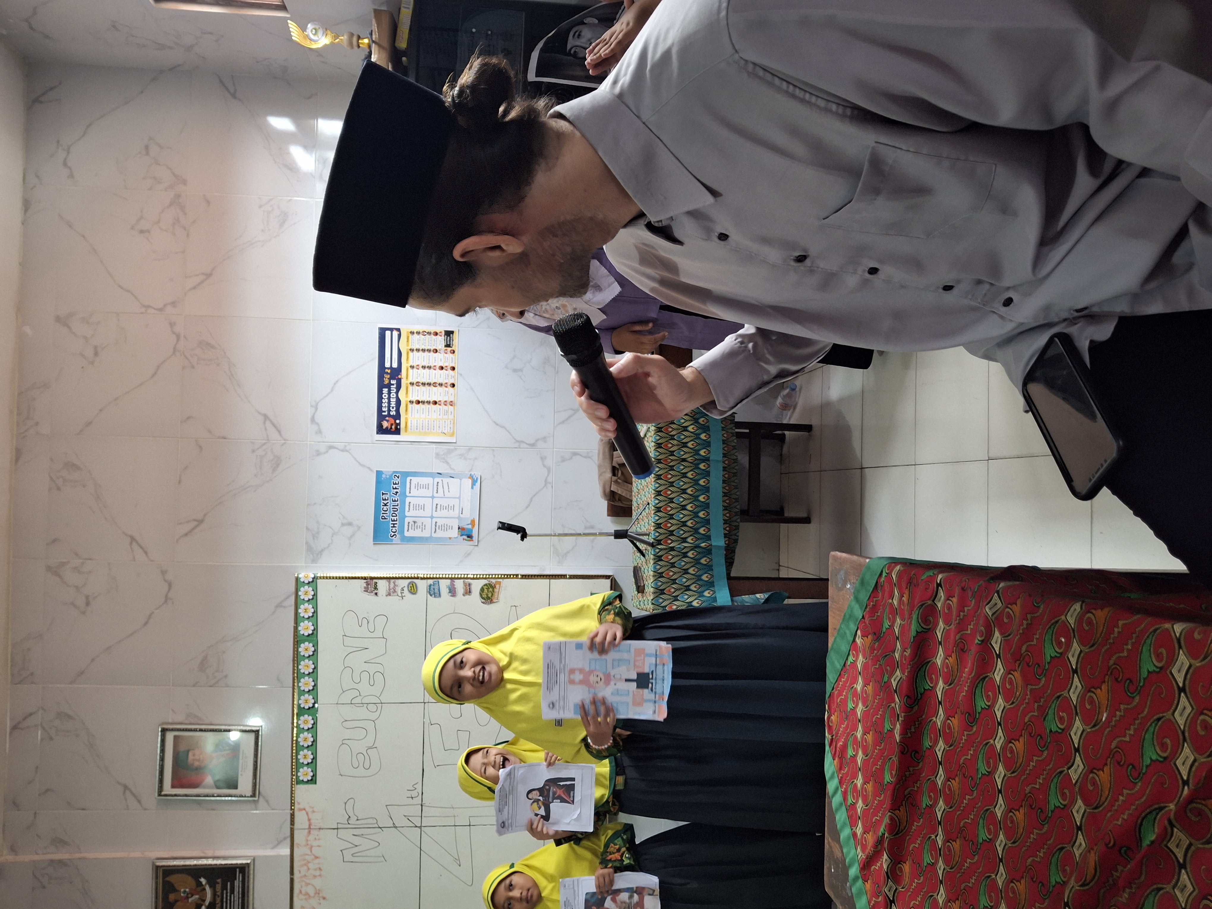 Mr. Eugene pun menanyakan banyak hal tentang Indonesia, khususnya tentang makanan favorit siswa, kegiatan harian di rumah, hingga pelajaran yang mereka sukai. Interaksi dua arah ini membuat para siswa merasa dihargai dan semakin percaya diri.